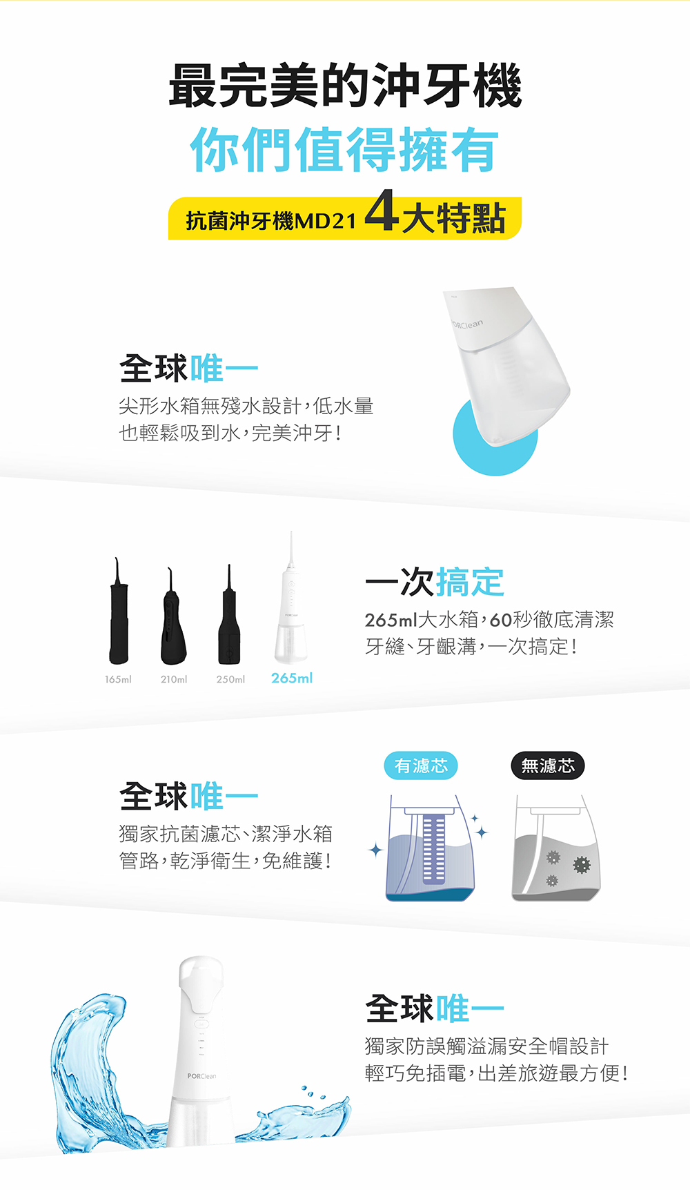 ▪️ 一次搞定 :265ml大水箱,90秒徹底清潔牙縫
