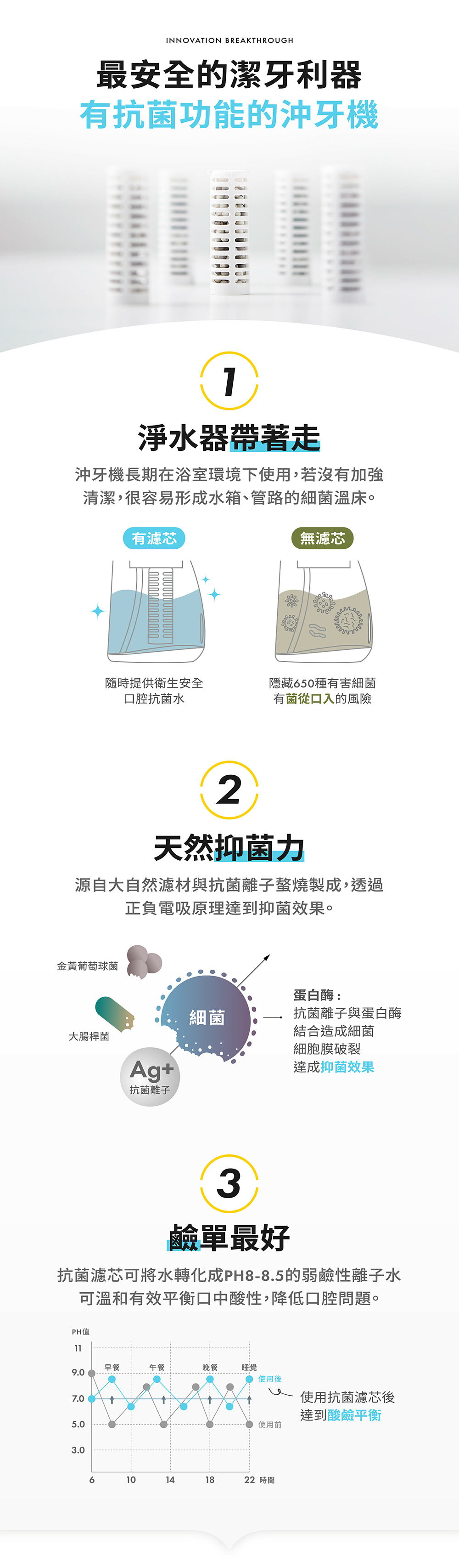 ▪️ 全球唯一 :抗菌濾芯,抑制多種壞菌,降低酸性口腔