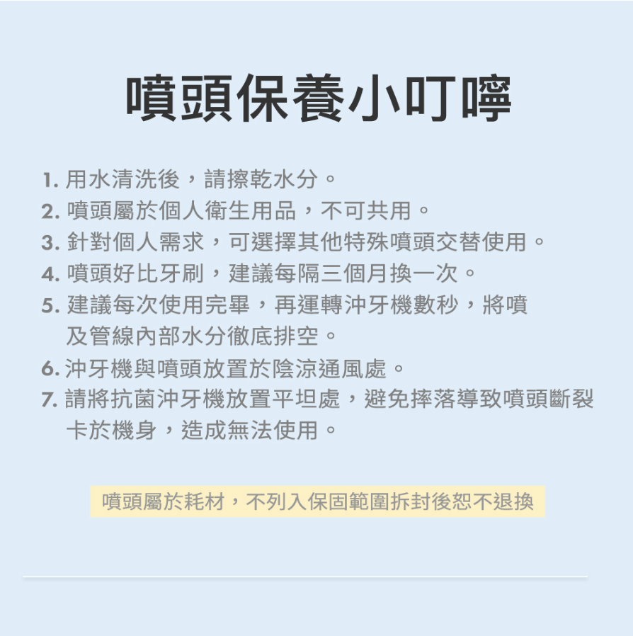 • 內含舌苔噴頭x1,圖片僅供參考,本產品實際顏色為淡藍色